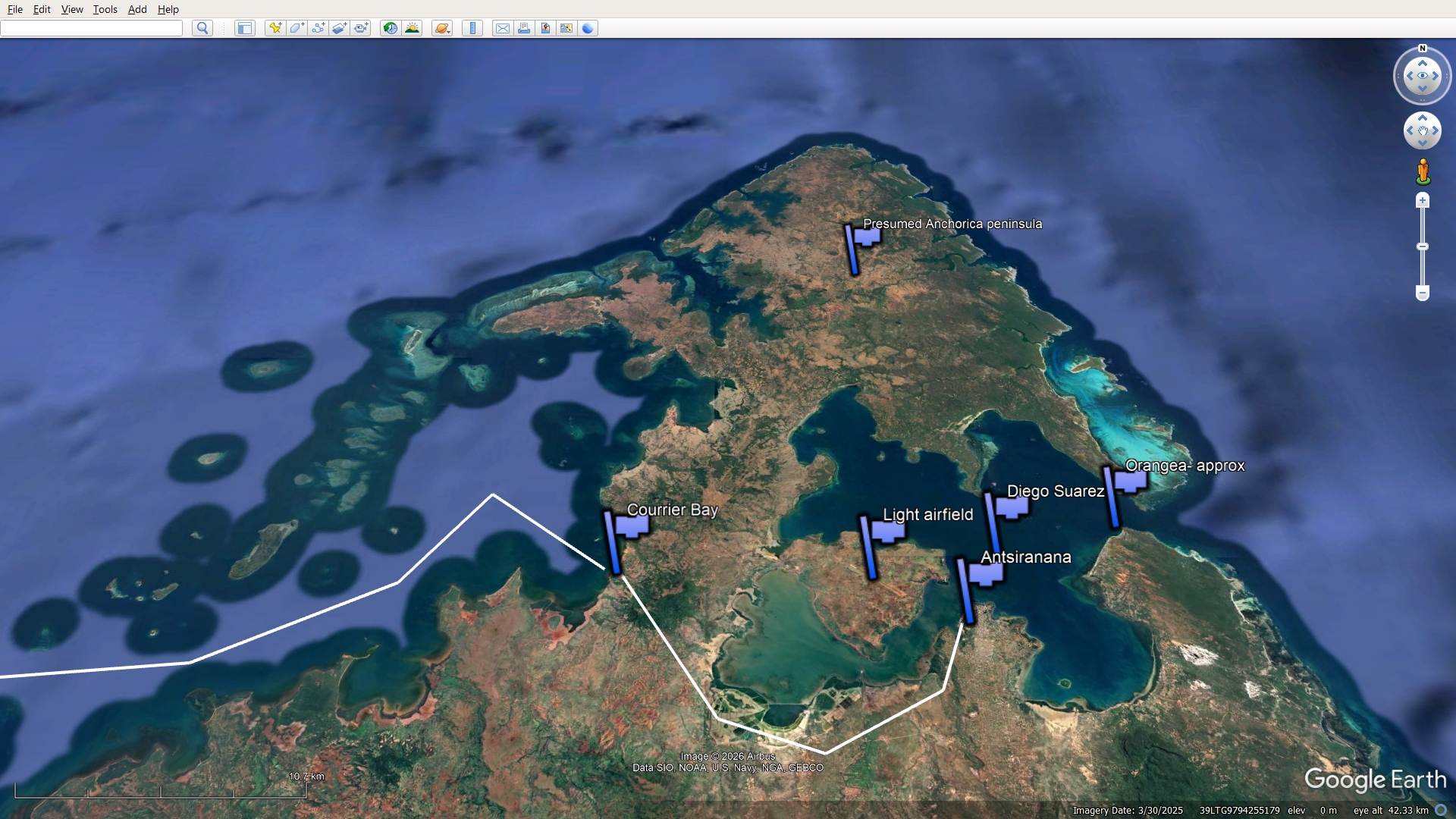 Our first job was to clear a large ammunition dump of booby traps and demolition devices with which the French had hoped to blow it up before falling into our hands. This we did and our training the previous years had stood us in good stead. We took up our Unit Position at a point called Orangea in some school rooms on the top of the cliffs. The days were extremely hot and the nights were cool and invigorating and as the sea was all around us, it was not too bad. The Brigade’s task was to clear the Peninsula of all French and native troops together with local natives and get it into a state of defence to ensure that the harbour of Diego Suarez could not be utilised by the Japanese, whose intention it was to capture it in the near future and use it for their fleet.